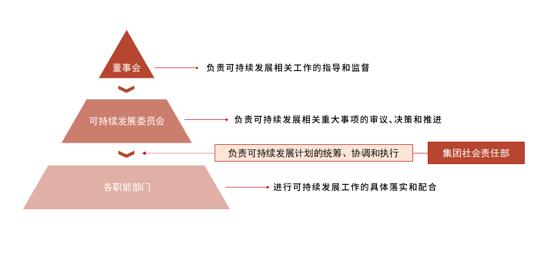 我们相信,科学高效的治理架构是推动企业可持续发展建设的基石。2021 年PP电子成立了独立的企业社会责任(简称“CSR”)部门,为进一步推动企业的可持续发展,2022 年 1 月 17 日PP电子成立了企业社会责任委员会,并在2023年初升级为可持续发展委员会。委员会将作为上市公司的战略决策机构, 由PP电子董事长王佶担任名誉主席、总裁谢斐担任主席,各职能高层为主要成员,从组织架构上保障了今后可持续发展事务运作的有效推进。